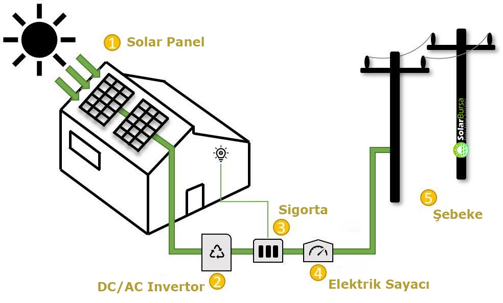 Tüketiminizi aşan fazla elektrik, şebekeye gönderilir.